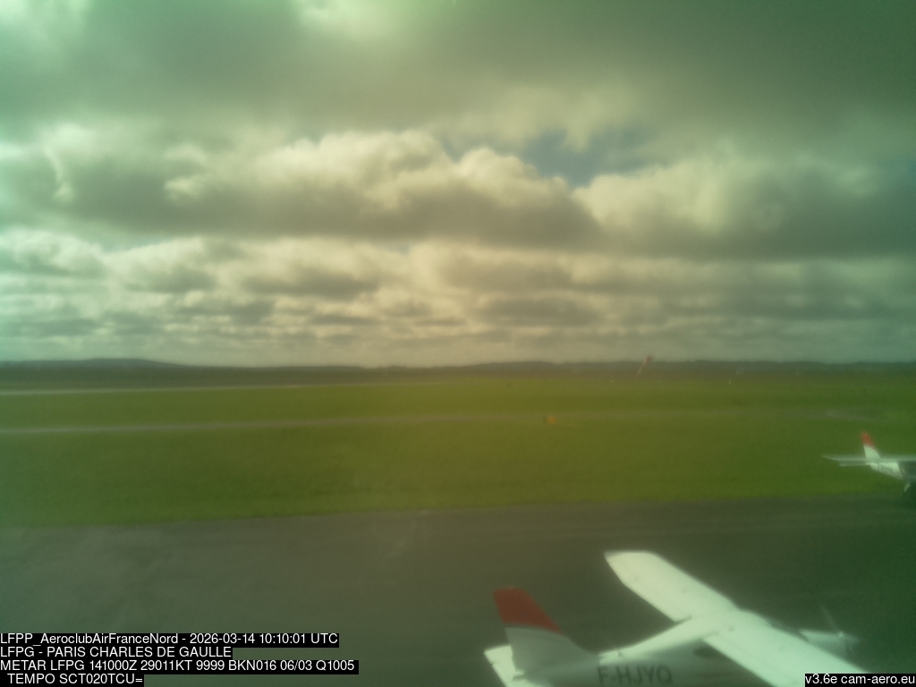 METAR LFPG 100600Z 18007KT 9999 BKN015 BKN120 12/11 Q1017 TEMPO BKN012=